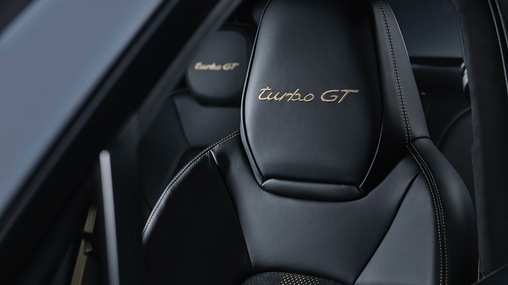 В салоне спортивный характер Cayenne Turbo GT подчеркивает высококачественное серийное оснащение с расширенной отделкой из алькантары. Спортивные передние сиденья с восьмипозиционной регулировкой и спортивные задние сиденья (с двумя посадочными местами) входят в базовую комплектацию. Как обычно для моделей GT, сиденья на центральной части обиты перфорированной алькантарой, украшены контрастными акцентами цвета Neodyme или Arctic Grey и надписями «turbo GT» на подголовниках. Типичное для спорткара многофункциональное спортивное рулевое колесо имеет желтую «нулевую» метку на ободе. В зависимости от выбора декоративных планок, акцентные вставки могут быть выполнены в матовом черном цвете.